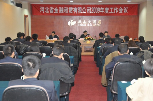 2009122,公司在燕山大酒店召開2009年度工作會議。會上張董事作了題為《再接再厲再創(chuàng)輝煌為實現(xiàn)“兩個最大”目標而努力》的報告。張董事長總結(jié)了2008年的工作,分析了當前的經(jīng)濟形勢和租賃市場的競爭格局,明確了今后一個時期公司落實發(fā)展戰(zhàn)略的指導思想和主要任務。